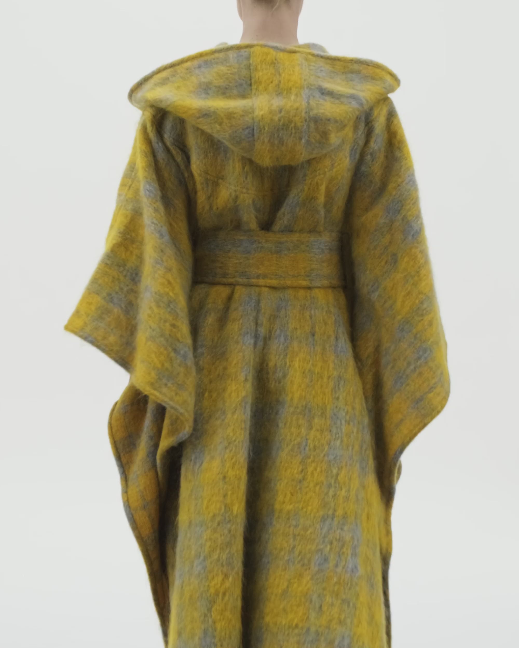 Mohair hooded belted cloak